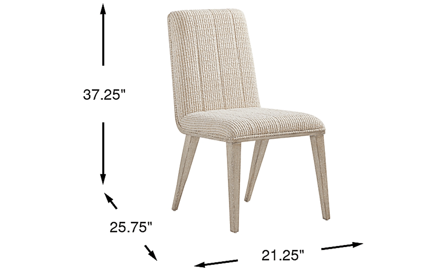 This contemporary side chair measures 21.25"W x 25.75"D x 37.25"H. With a seat height of 19 inches, it is designed to pair perfectly with standard dining tables, which typically have a height of 28 to 30 inches. This height provides the ideal 10 to 12 inches of legroom between the seat and the tabletop for a comfortable dining experience.