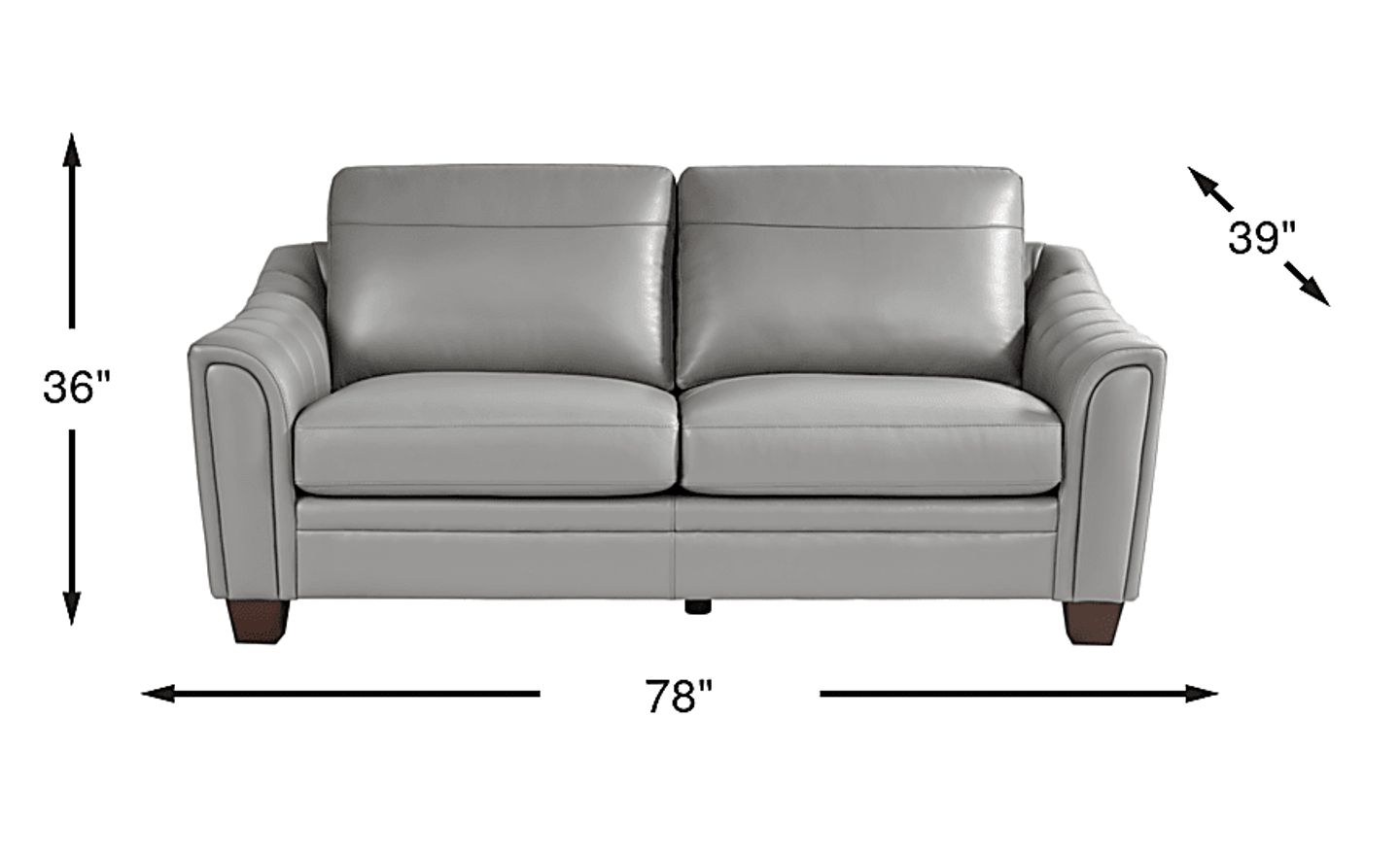 The open and inviting style of the Santa Croce loveseat brings a vibrant, welcoming vibe to your space. Upholstered in top grain leather where the body touches, this contemporary set features channeled flare arms and a square tapered leg for an attention-grabbing look. Loose seat cushions offer easy cleaning and add longevity. Top grain leather where the body touches and vinyl sides and backs.