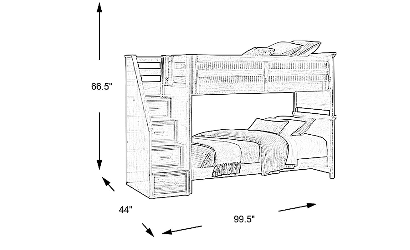While a step bunk has a longer footprint (99.5 inches) than a ladder model, it is a superior choice for maximizing vertical and floor space. This design integrates storage drawers directly into the staircase, providing a built-in chest of drawers without requiring additional square footage. This "two-in-one" functionality is ideal for organizing clothes or toys in compact urban apartments or shared suburban bedrooms where floor space is at a premium.