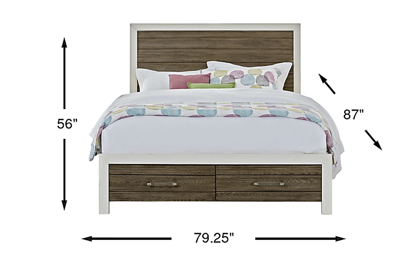 With its sleek styling, built-in storage drawers and unique multi-dimensional paneling, the Santa Fiora panel bed is anything but ordinary. Crafted of wood solids and oak veneers, this contemporary bed's contrasting gray and white finish give it a chic, high end look that allows you to sleep in style. Two drawers on the footboard provide extra space for folded clothing and accessories. Mattress and foundation (if required) sold separately. Bed shown is queen size.