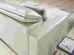 The one of display at the store was more comfortable than what we got, the chaise lounge area was longer (length wise) and I could sit in (6ft tall) without my feet hanging off but the one we got, my feet was hanging way off. But the one at the store was the fabric one not this white leather one exactly.