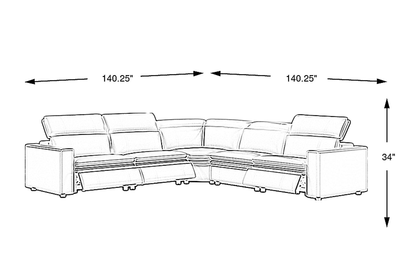 Measuring for a sectional of this scale is essential, as it measures 140.25" on both sides. To ensure a comfortable fit, we recommend following the "2/3 rule," where the sofa occupies about two-thirds of the wall it sits against. Additionally, plan for 18 to 24 inches of walkway space around the unit to maintain easy movement throughout the room. Because this is a reclining model, remember to leave several inches of clearance between the back of the sectional and the wall to allow the headrests and footrests to extend fully.