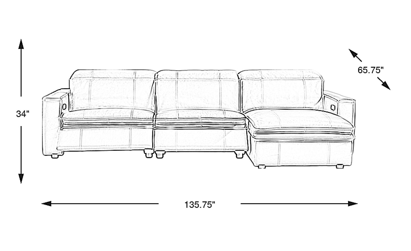 135.75"w x 65.75"d x 34.00"h