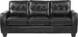 Effortless sophistication and practical functionality are yours with the Santoro sleeper. From the irresistibly soft, supple leather wherever the body touches, to the button tufted detailing to the chic black color, this is one style savvy sleeper. Overnight guests will enjoy the queen-sized Nature's Bed Reflection mattress with gel memory foam comfort. Padded cushions and stitching detail ensure this piece is as comfortable as it is stylish. Contemporary track arms and block legs in a rich brown finish offer support. Top Grain Leather Where the Body Touches and Blended Leather (polyurethane fabric blended with leather particles) sides and backs.