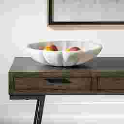 With its clean, transitional lines and marble-inspired finish, this bowl serves as a versatile focal point for various luxury aesthetics. Its crisp white tone offers a striking contrast against dark teak or all-weather wicker furniture, perfectly complementing the breezy, light-filled look of a coastal retreat or the minimalist requirements of a modern outdoor living room.