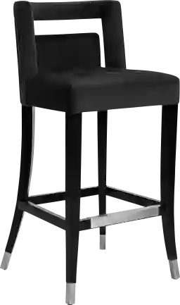 Not for the faint of heart, these stools will make you swoon. Making their debut with a bold statement, the Saraelle barstool in sumptuous black velvet. Hand-applied nail heads and metal tipped legs match the accompanying footrest.