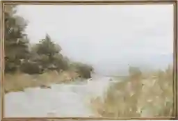 This serenity-inspired landscape is specifically curated to provide a tranquil update to spaces meant for focus, such as a home office. The "Rustic" style and muted color palette offer a calming visual break, which can help lower stress and foster a more peaceful working environment. Additionally, the coordinating brown frame provides a polished, professional look that complements traditional or country-inspired office furniture.
