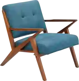 While matching sets provide a uniform look, this piece is designed to be a transitional statement chair that thrives on contrast. The refreshing blue hue and pecan wood finish are inspired by '60s Mid-Century Modern aesthetics, making it the perfect pop of color to pair with neutral sofas in shades of gray, beige, or cream.