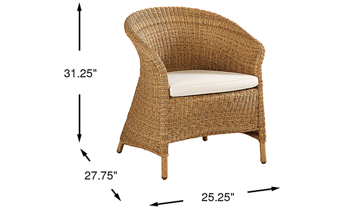 With a width of 25.25 inches, this arm chair offers a sophisticated, streamlined profile that is an excellent choice for space-conscious areas like urban balconies or smaller side patios. The open texture of the all-weather wicker and the light finish family provide a sense of visual "airiness," helping to prevent a compact outdoor space from feeling overcrowded while still providing the comfort of a full-sized dining chair.