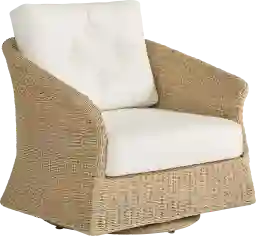 From the first breath of spring through the breezy comfort of autumn and beyond, the Sarina Bay collection brings the pleasures of the season to life. A powder-coated aluminum frame wrapped in all-weather wicker showcases a radiant natural color and vibrant texture in the sweeping curves of the seat. UV-resistant cushions in white enhance the look with a tailored appearance. This club chair includes soothing swivel motion for premium relaxation.