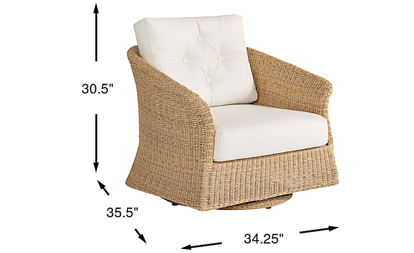 From the first breath of spring through the breezy comfort of autumn and beyond, the Sarina Bay collection brings the pleasures of the season to life. A powder-coated aluminum frame wrapped in all-weather wicker showcases a radiant natural color and vibrant texture in the sweeping curves of the seat. UV-resistant cushions in white enhance the look with a tailored appearance. This club chair includes soothing swivel motion for premium relaxation.