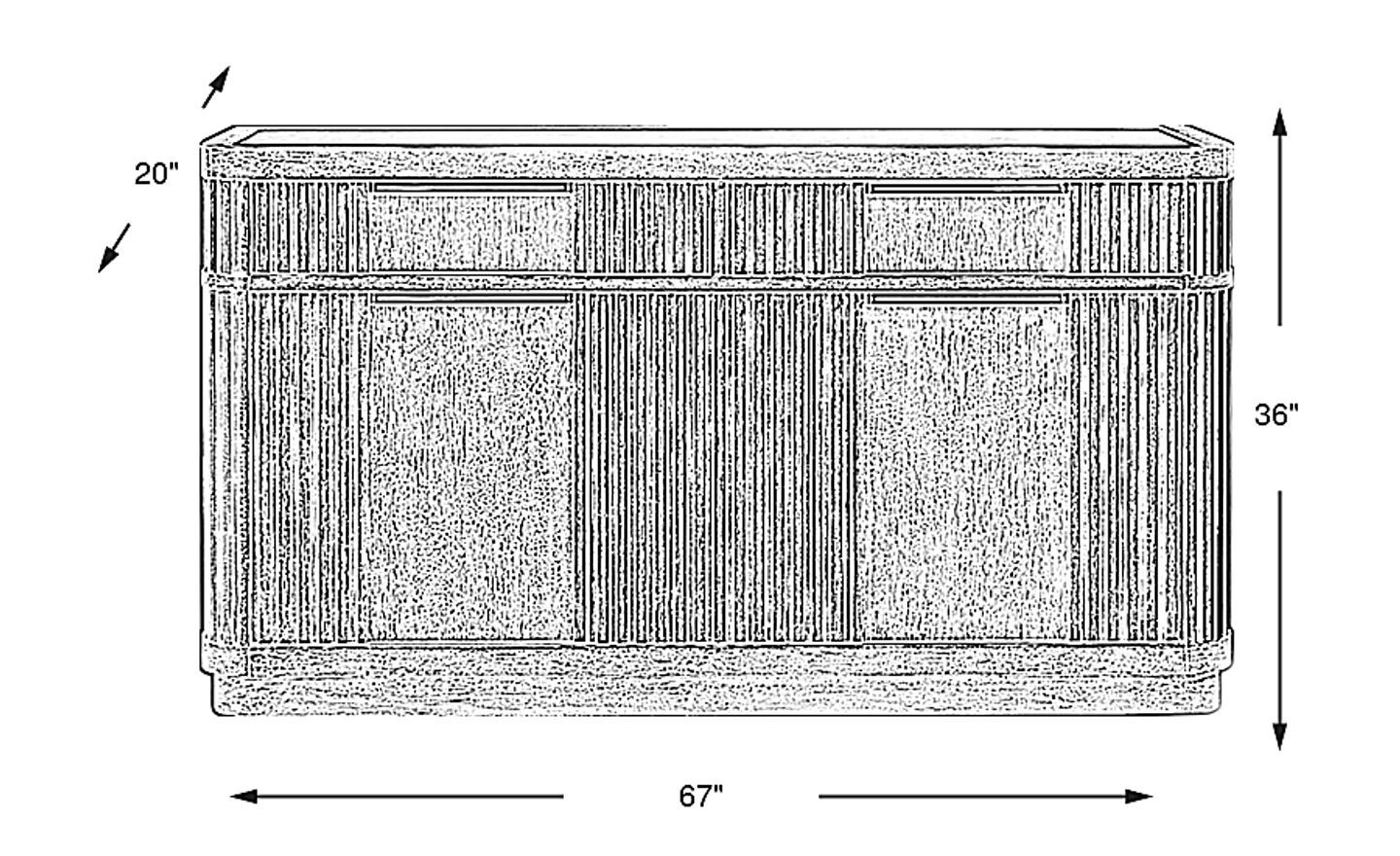 This server has a substantial presence with a width of 67 inches and a depth of 20 inches. For optimal flow in an urban apartment or suburban dining room, we recommend maintaining at least 36 inches of clearance between the buffet and your dining table. This allows enough space for the cabinet doors to swing open fully and ensures that traffic can move freely through the room during a meal.