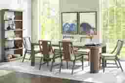 Boldly confident with a gentle touch of softness, the Sausalito dining table from Drew and Jonathan punctuates the day with a quiet double-take at its red carpet-worthy looks. Contemporary in style, this piece's commanding silhouette is crafted with oak veneers while channeled legs provide the final, authoritative detail.