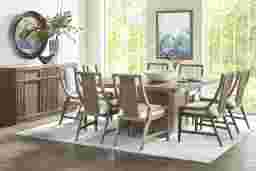 Boldly confident with a gentle touch of softness, the Sausalito dining table from Drew and Jonathan punctuates the day with a quiet double-take at its red carpet-worthy looks. Contemporary in style, this pedestal table's commanding silhouette is crafted with oak veneers while the channeled detailing on the base provides the final, authoritative detail.