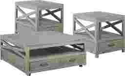 Complete your living room look with the stylish Savenay occasional table set. Featuring three tables, ample storage and pine solid construction with an attractive, weathered gray finish, the rustic appearance of this set makes it a must have.