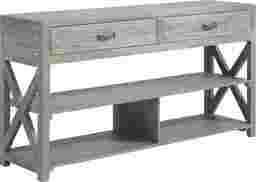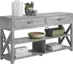 Featuring an intriguing farmhouse-style design with two drawers for living room essentials and ample storage space beneath, the Savenay sofa table adds a warm, tranquil feeling to your home. Showcasing a weathered gray finish, this table's rustic aesthetic makes a great addition to your living space.