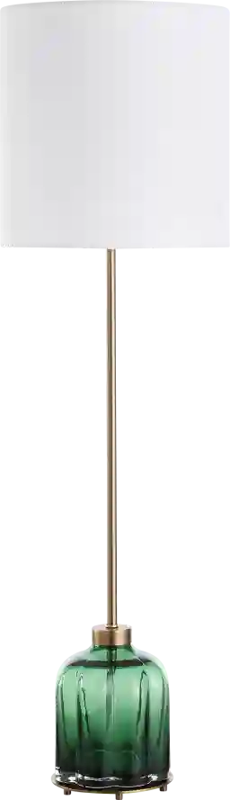 Timeless in design, the Savery View Green Lamp showcases a fluted emerald glass base that's paired with antique brass plated accents. The round hardback drum shade is a white linen fabric with natural slubbing.Partial assembly may be required.
