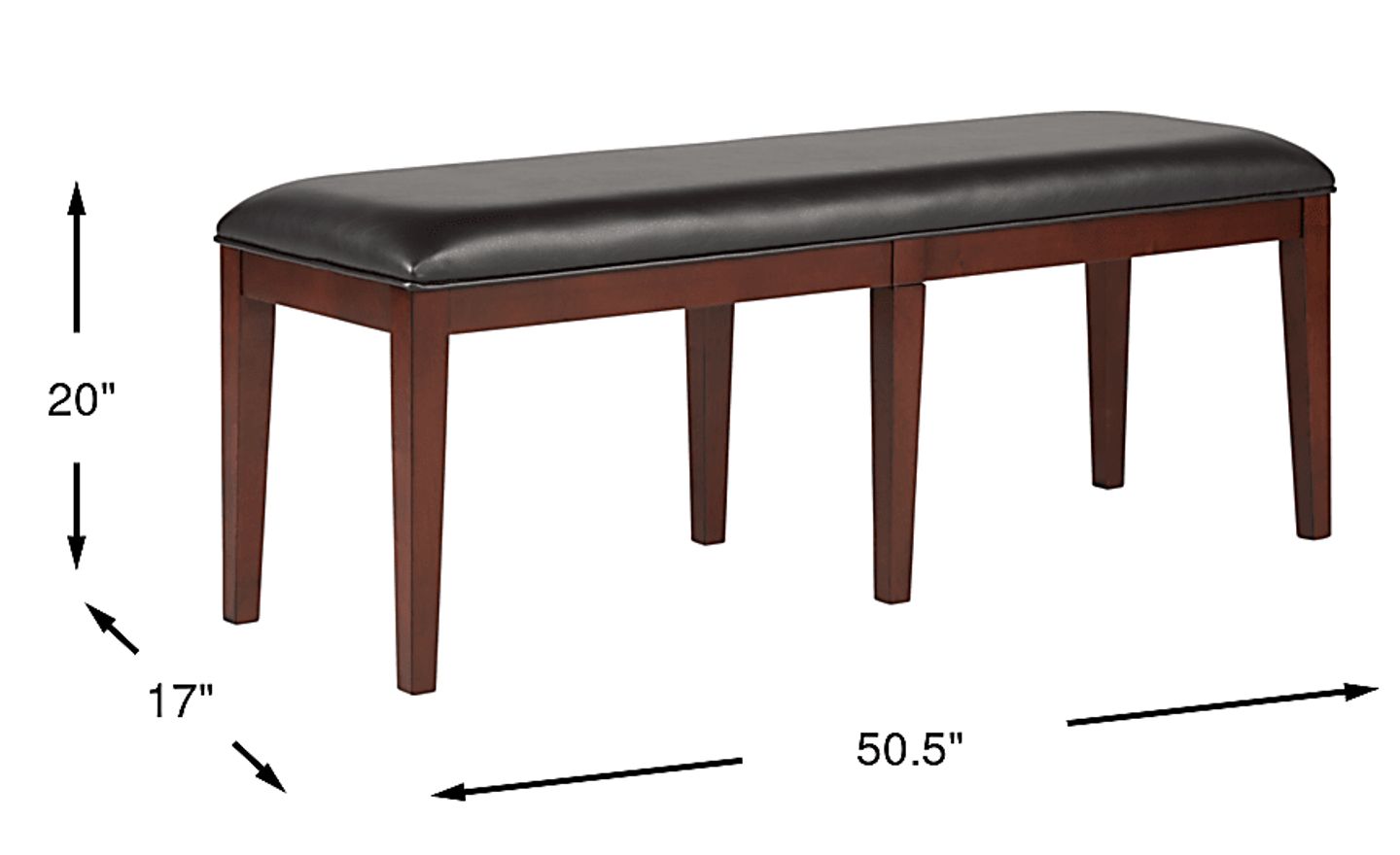Add a unique, contemporary touch to your dining room with the cozy Savona counter height bench. Featuring a sleek design, this bench's cherry finished base offers a nice contrast to the cozy padded bench seat upholstered in supple, easy-to-clean chocolate UltraHyde fabric.