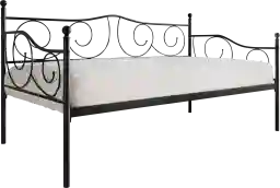 Embrace sophistication and functionality with the exquisite Sawwarers metal daybed, a perfect blend of contemporary charm and practical design. The intricate finial detailing adds a touch of modern elegance, seamlessly elevating any space. Crafted from a robust metal frame and fortified with solid wooden slats, this daybed ensures unwavering stability for a tranquil night's sleep. Maximize vertical space with ample storage underneath while maintaining a sleek profile. Featuring a 12-piece solid wood bed slat, it eliminates the need for a box spring, offering both support and convenience. The rust-resistant powder coat finish guarantees enduring durability, ensuring this daybed remains a timeless addition to your home. Customer assembly is required.