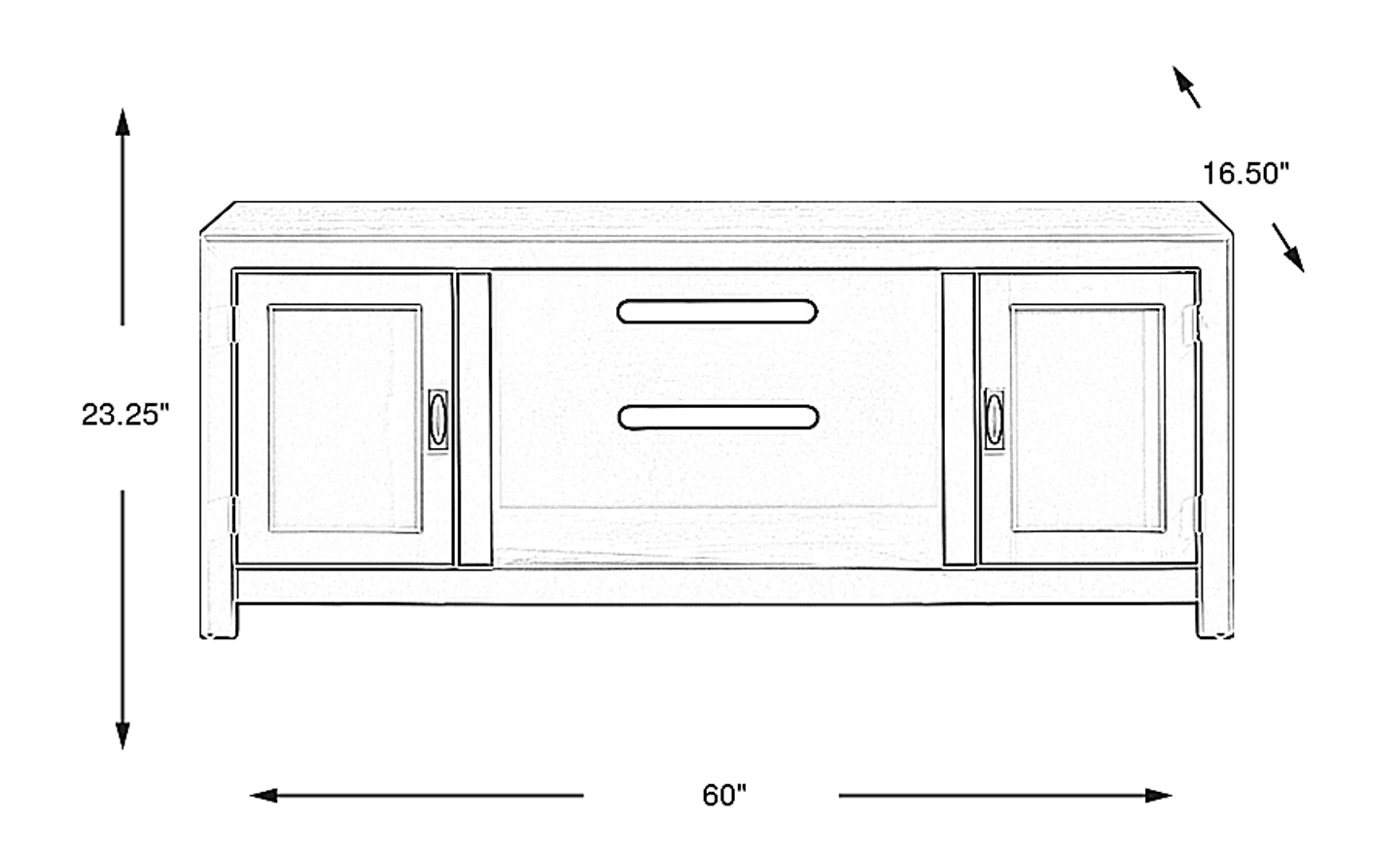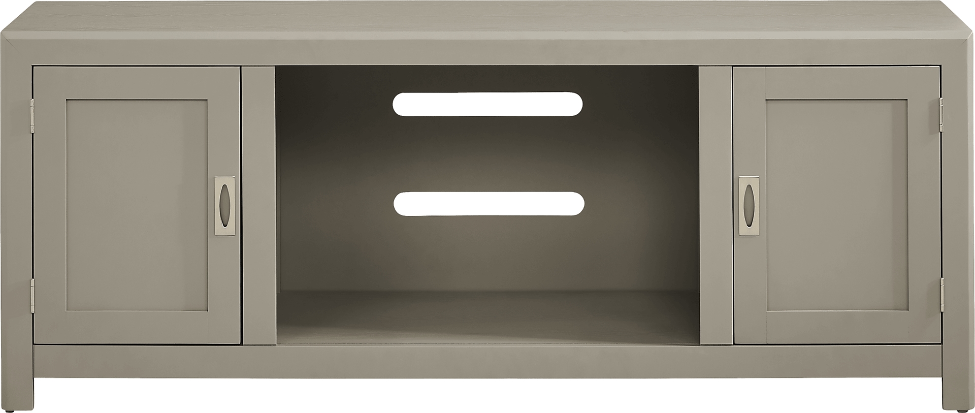 Where rustic charm meets modern functionality, you'll find the Sawyer Mills home entertainment console waiting to transform your living room, basement, bedroom or den. Crafted of pine solids in a smooth silver finish with an angular appearance, this contemporary piece measures approximately 60 inches wide when assembled. Each end of the console houses a cabinet that has an adjustable shelf hidden behind a door embellished with brushed nickel hardware. Wire management holes are built into the back panel of the piece, allowing cords and cables to pass through to power.