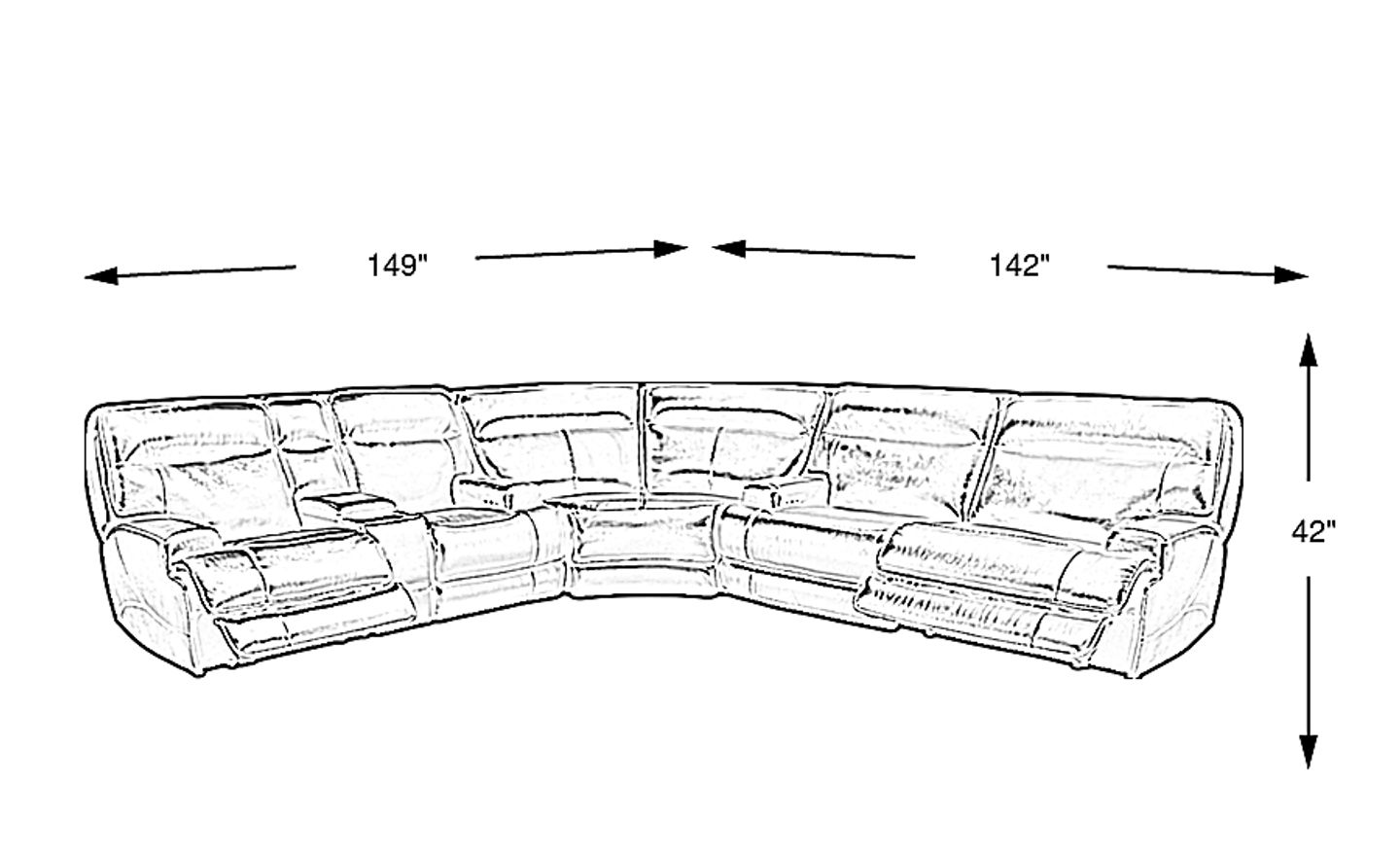 The art of relaxation is painted in the soft, rounded curves of the Scarborough sectional, its rich, unassuming luxuriousness filling any space with contented sighs. Transitional in design and upholstered in black top grain leather where the body touches, it features sumptuous padded arms along with padded outside arms and backs. Its attached seat and back cushions are embellished with generous double-stitching a deep horizontal stitch across the back for added comfort and visual appeal. Dual power reclining functions allow adjustments in the head and extended footrest via a patented zero gravity mechanism for the ultimate lounging experience. USB-A and USB-C charging ports are located both on the side switch and in the console, which also contains wireless charging and an LED light. A sliding cupholder completes the list of tech and relaxation features. Top grain leather where the body touches. Polyurethane sides and back.