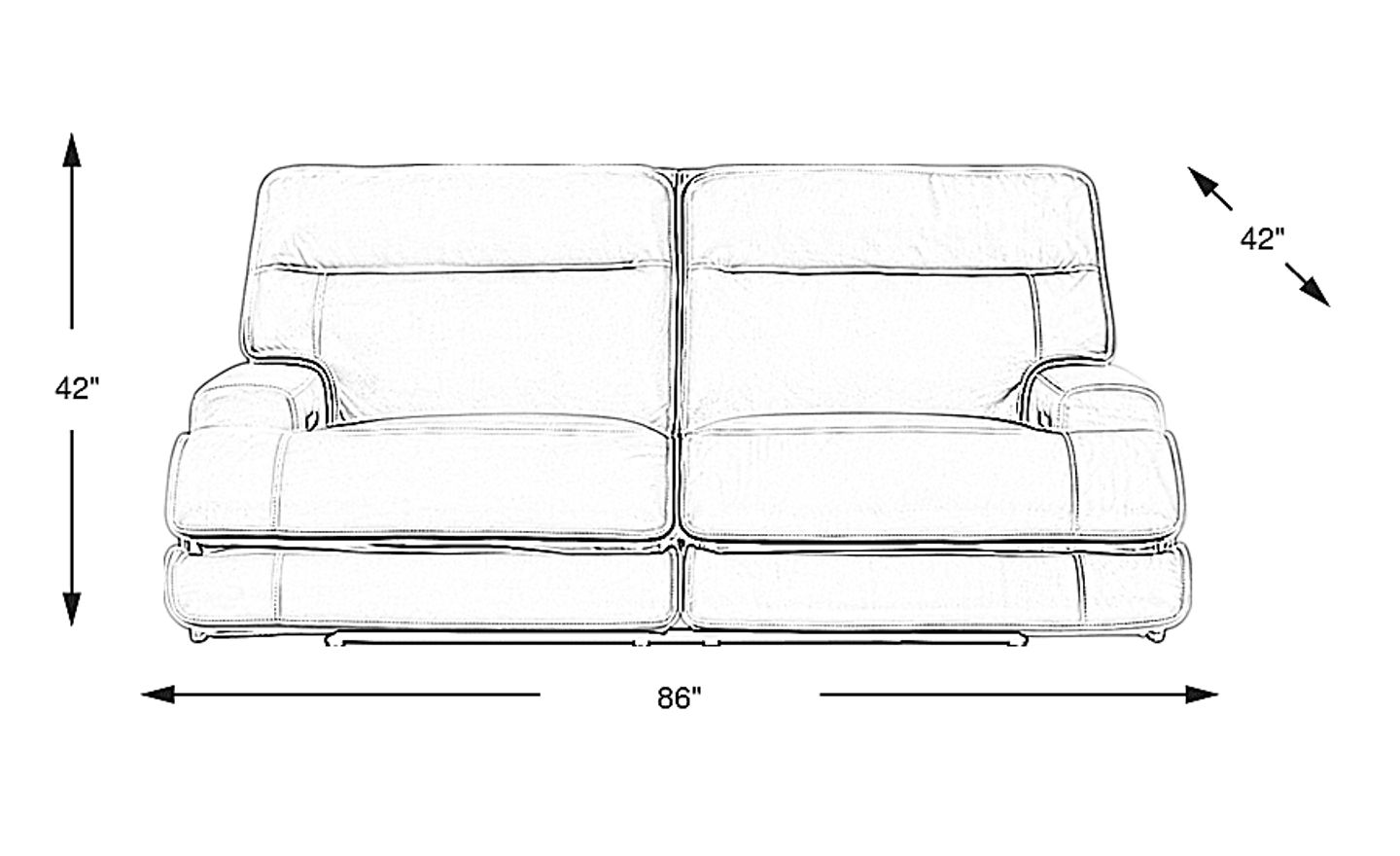 The sofa measures 86 inches wide, 42 inches deep, and 42 inches high, with a seating capacity for two. While it offers spacious comfort, its design can work effectively in various living spaces. We always recommend measuring your room and entryways carefully to ensure it fits comfortably within your desired layout and through any narrow doorways typical of apartment living.