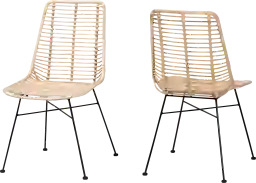 Rejoice in an atmosphere of rustic elegance for every meal with the charming Scrimgeour natural dining chair, set of 2. This bohemian inspired piece consists of a solid metal base topped with a handcrafted rattan seat. Its tapered backrest lends a classic display while slim rattan rods laid within the frame offer superb comfort with a sense of tranquility. The Scrimgeour utilizes angled legs connected by a crisscross base for excellent stability and support. Due to the nature of the natural materials used in this product, it may have variations in areas such as, but not limited to, color, pattern, grain and texture. The hair-like strands of rattan/rattan-fiber are common due to the nature of the material. Customer assembly is required.
