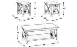 The unique Scotford 3-pack tables for a fresh addition to any room. Large versatile cocktail table features a full lift-top function for proper dining or work surface heights. End table is square for use beside sofa and smaller chairside table is scaled for use in package or separately. All pieces have crisscross design on sides and feature full shelves for additional storage areas. Customer assembly is required.
