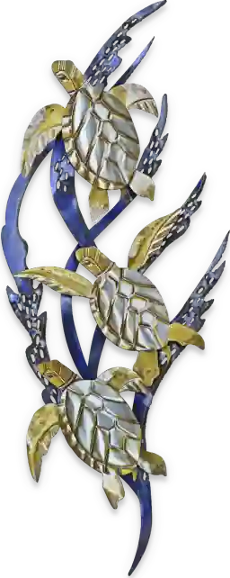 Absolutely. While crafted with the durability needed for protected outdoor spaces, the "Sea Turtles in Kelp" design is refined enough to serve as a stunning focal point in a sunroom, bathroom, or coastal-themed living area. Its multi-toned metallic finish adds a sophisticated, three-dimensional element to any indoor gallery wall.