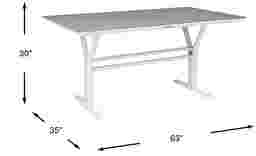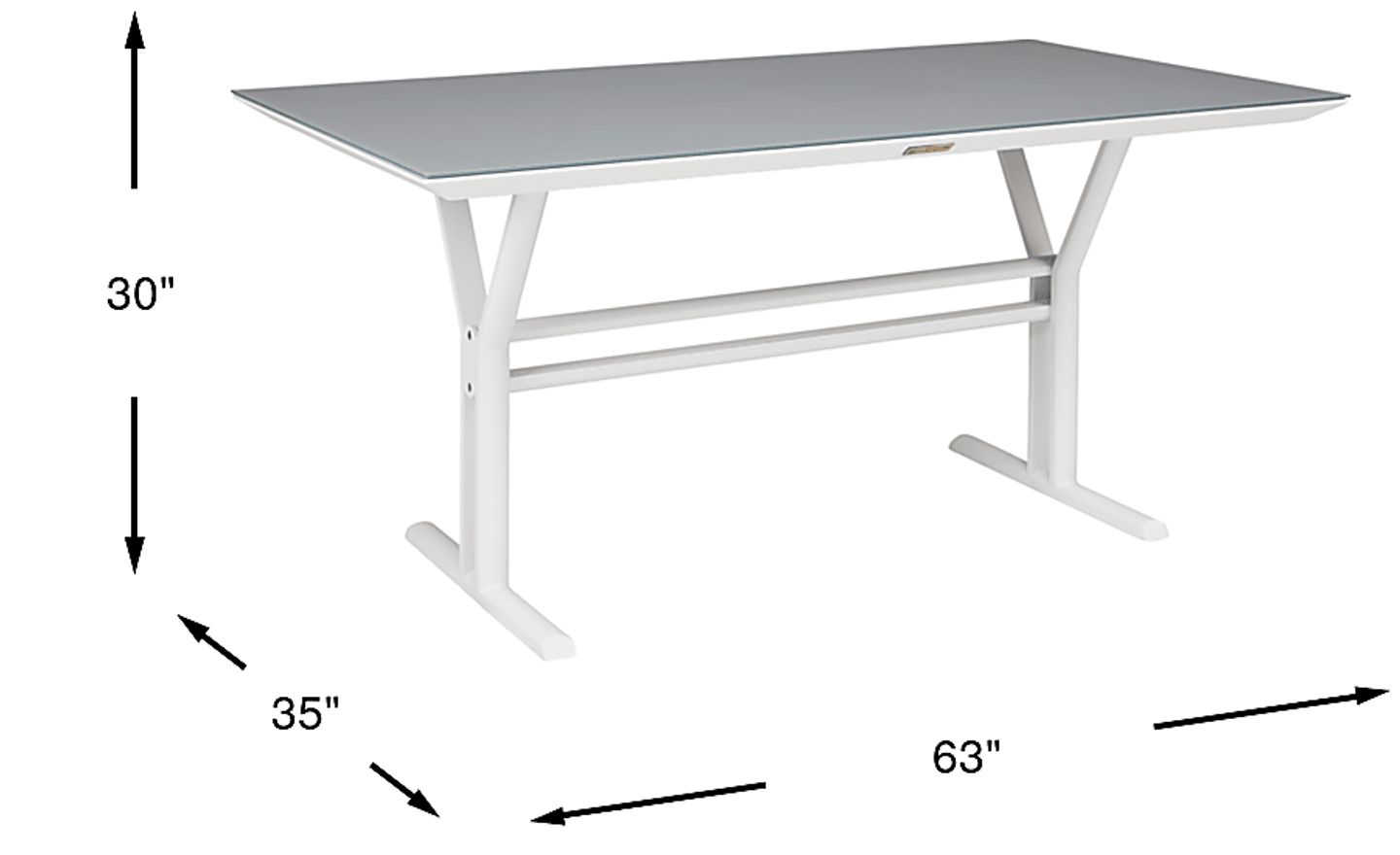 Warmer weather means casual backyard meals and the Seagate outdoor dining table makes the perfect headquarters for cookouts and refreshments. Supported by a durable rust resistant aluminum frame, the contemporary trestle table boasts a 35 x 63 inch gray glass top. The white finish makes it an easy addition to existing patio decor.