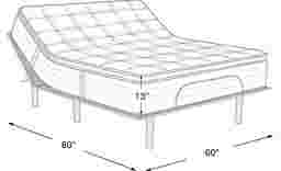 80"l x 60"w x 13"h; adjustable base: 4"h