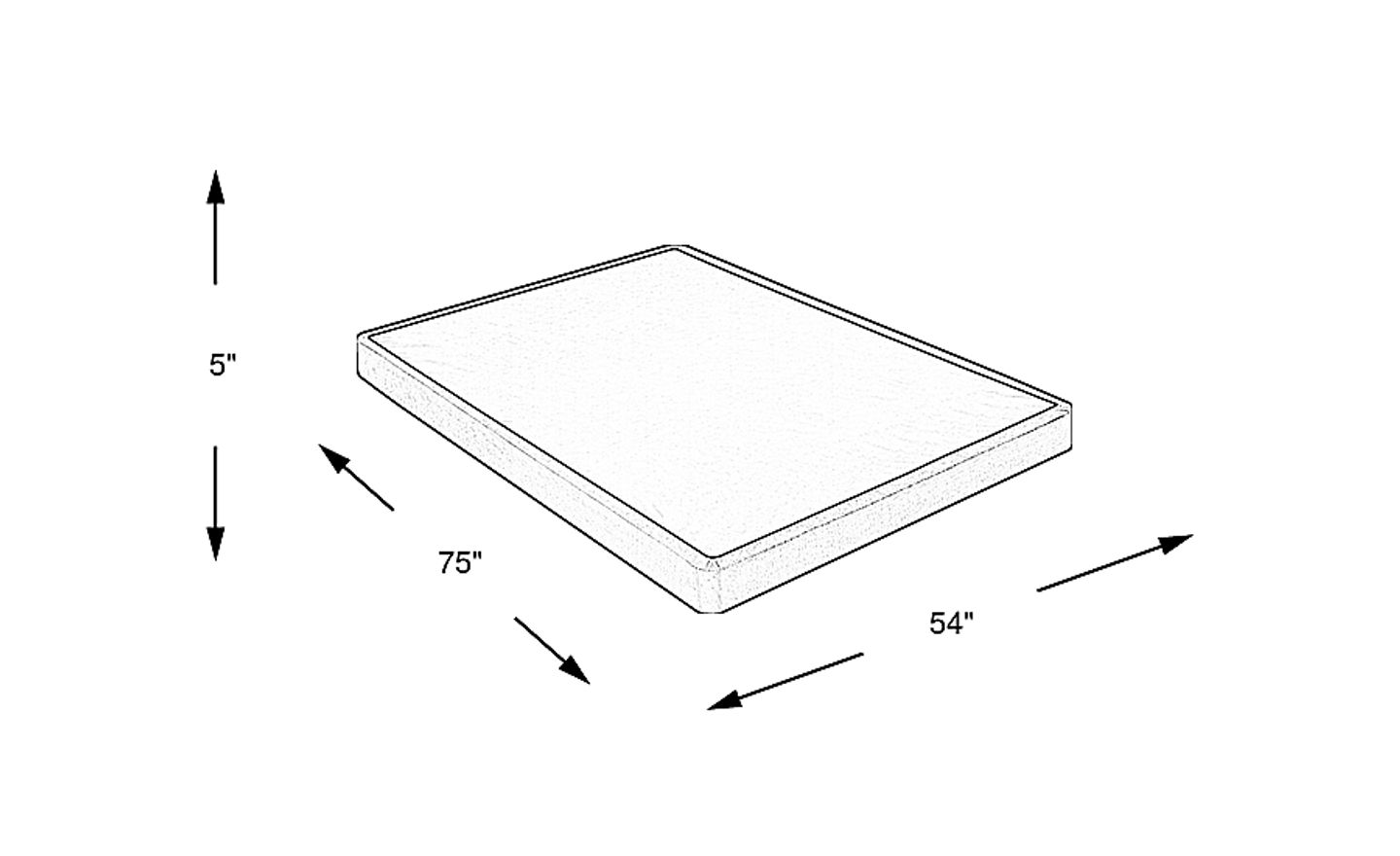 This full-size foundation measures 75"L x 54"W x 5"H. Its standard full-size footprint is designed to fit most full bed frames, while the 5-inch "low profile" height offers a modern, streamlined look compared to traditional 9-inch foundations.