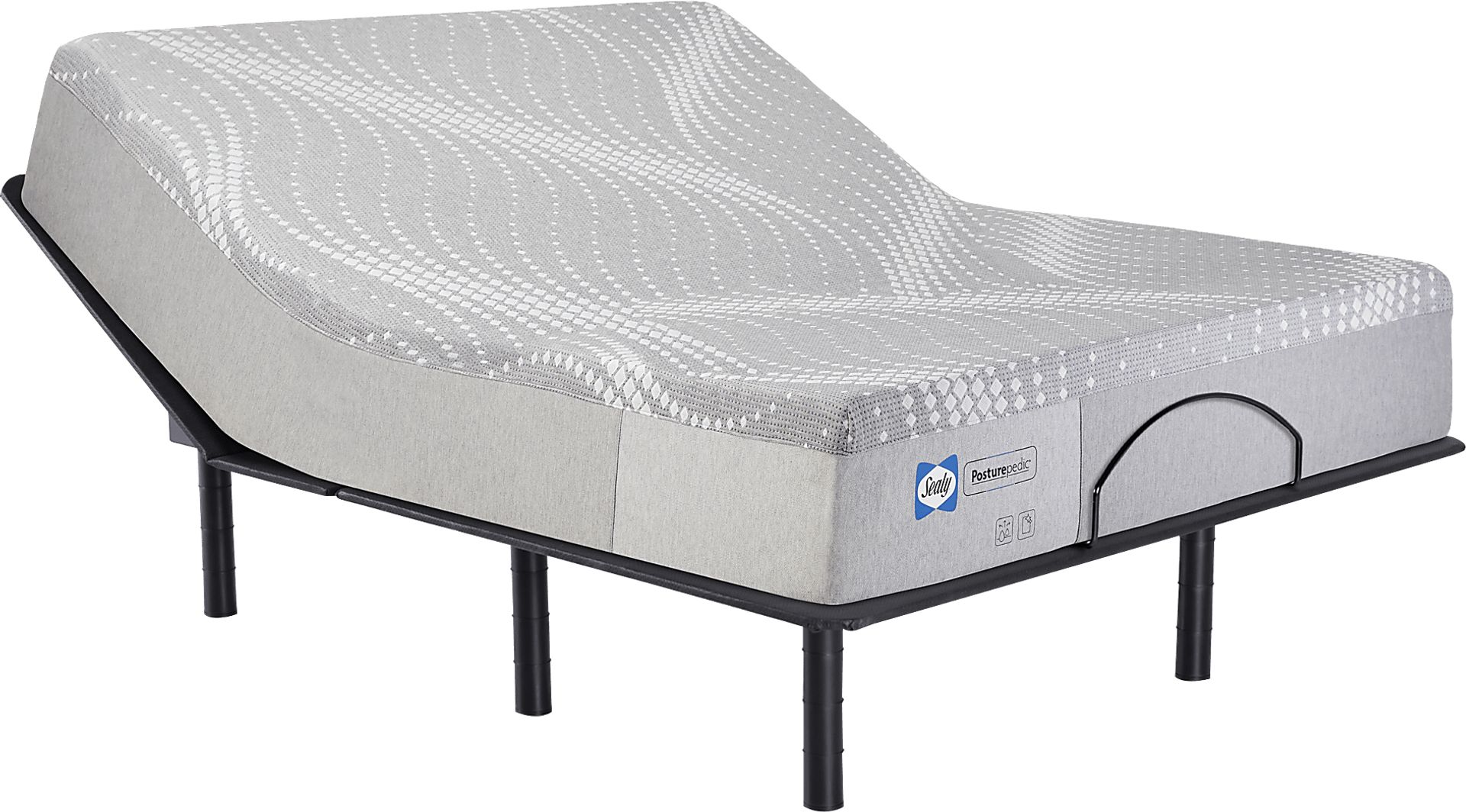 The Cotinga mattress from Sealy Posturepedic offers a firm, supportive foundation for comfortable sleep. A stretch-knit cover with MoistureProtect and Surface-Guard technology combines moisture-wicking material with antimicrobial properties, feeling fresh while protecting against dust mites, dander and other bacteria. Delivering pressure relief, ComfortSense memory foam naturally conforms to your body and distributes weight evenly. SealySupport gel foam provides a supportive foundation. This mattress comes delivered roll packed and in a box. This mattress comes delivered roll packed and in a box. Conveniently raise or lower the head of your mattress using the RTG Sleep 2900 adjustable base with wireless remote control.