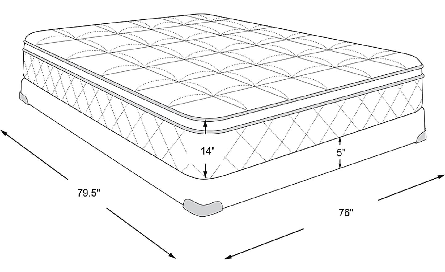 mattress: 79.5"l x 76"w x 14"h, foundation: 5"h