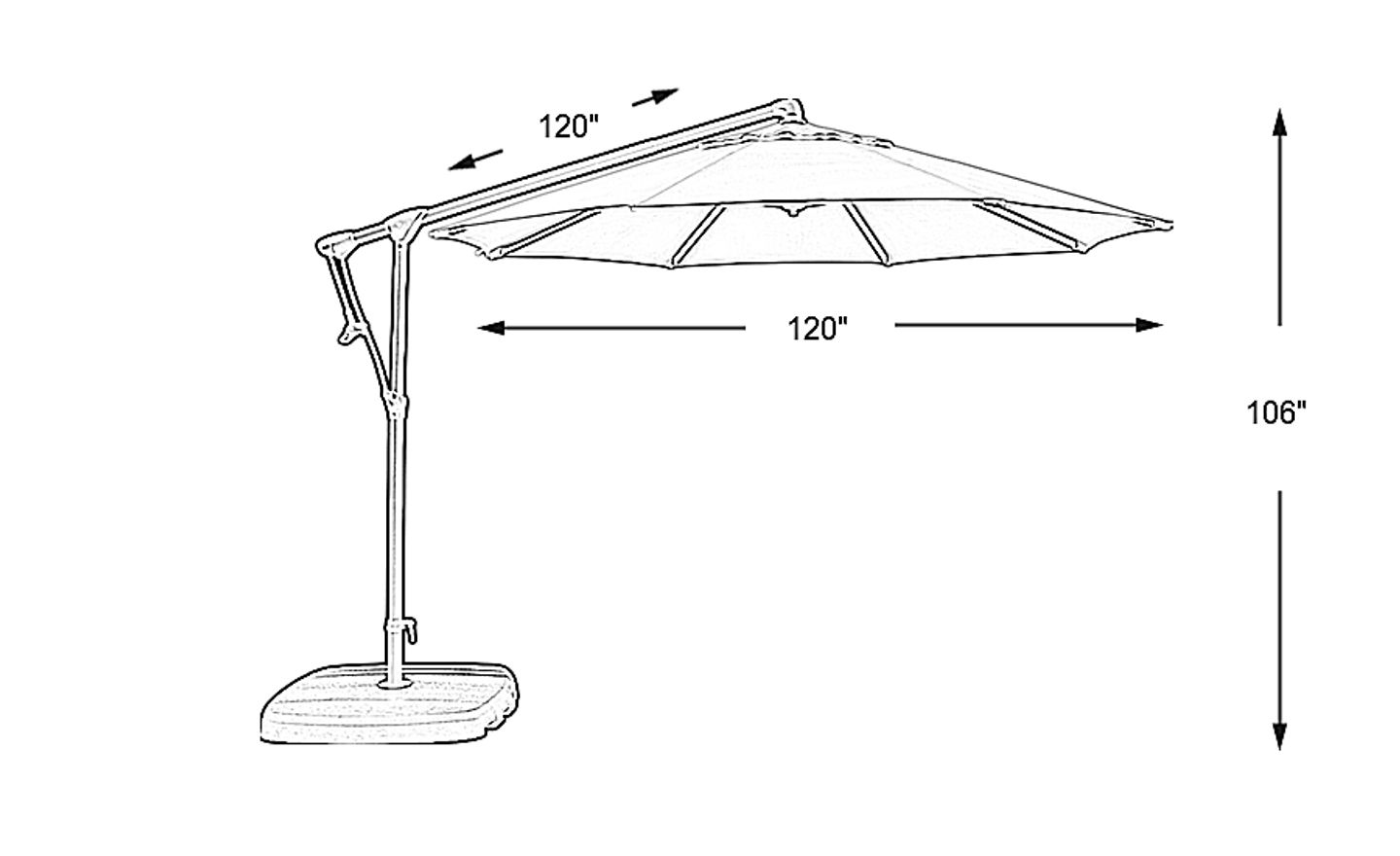 Providing flexible coverage for up to 74" rectangle tables, the Seaport cantilever style umbrella is a fantastic choice. This 10' octagon shaped umbrella, positioned on an offset frame, offers high 98% UV protection with long lasting Sunbrella fabric in a neutral stone color. Durable too, Sunbrella fabric is known for its ability to resist fading, mold and mildew. Easy to operate with a hand crank and offering versatile coverage, the umbrella easily rotates 360 degrees and tilts left to right up to 90 degrees. The umbrella can be locked into place once the desired tilted position is found. The pole and sand-weighted base are crafted of rust proof powder coated aluminum and a very durable HDPE plastic both in a bronze finish. Customer assembly is required. 100% Sunbrella fabric. To clean Sunbrella fabric remove dirt and spray on cleaning solution (water and mild soap), then use a soft bristle brush or sponge. Allow cleaning solution to soak into fabric and rinse thoroughly until soap residue is removed. Air dry. Do not dry clean.