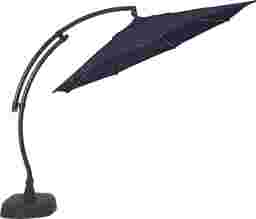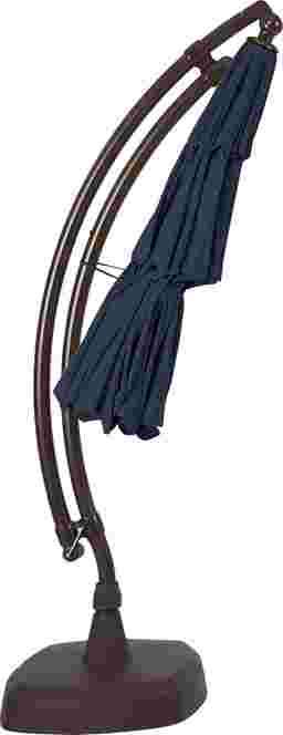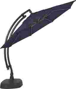 Providing flexible coverage for up to 84" rectangle tables, the Seaport cantilever style umbrella is a fantastic choice. This 11' octagon shaped umbrella, positioned on a curved frame, offers high UV protection with long lasting, durable, solution-dyed fabric in a navy blue color. Easy to operate with a hand crank and offering versatile coverage, the umbrella easily rotates 360 degrees to shade you from the sun all day. The umbrella can be locked into place once the desired tilted position is found. The pole and sand-weighted base are crafted of rust proof powder coated aluminum and a very durable HDPE plastic both in a bronze finish. Customer assembly is required.
