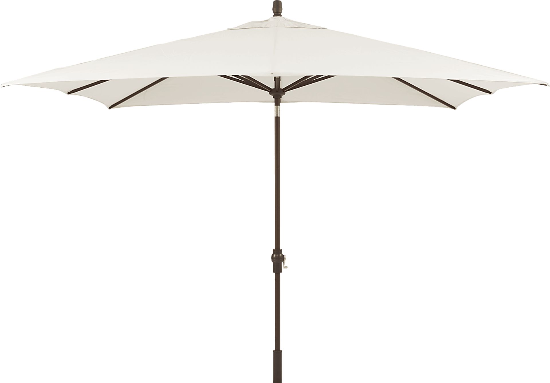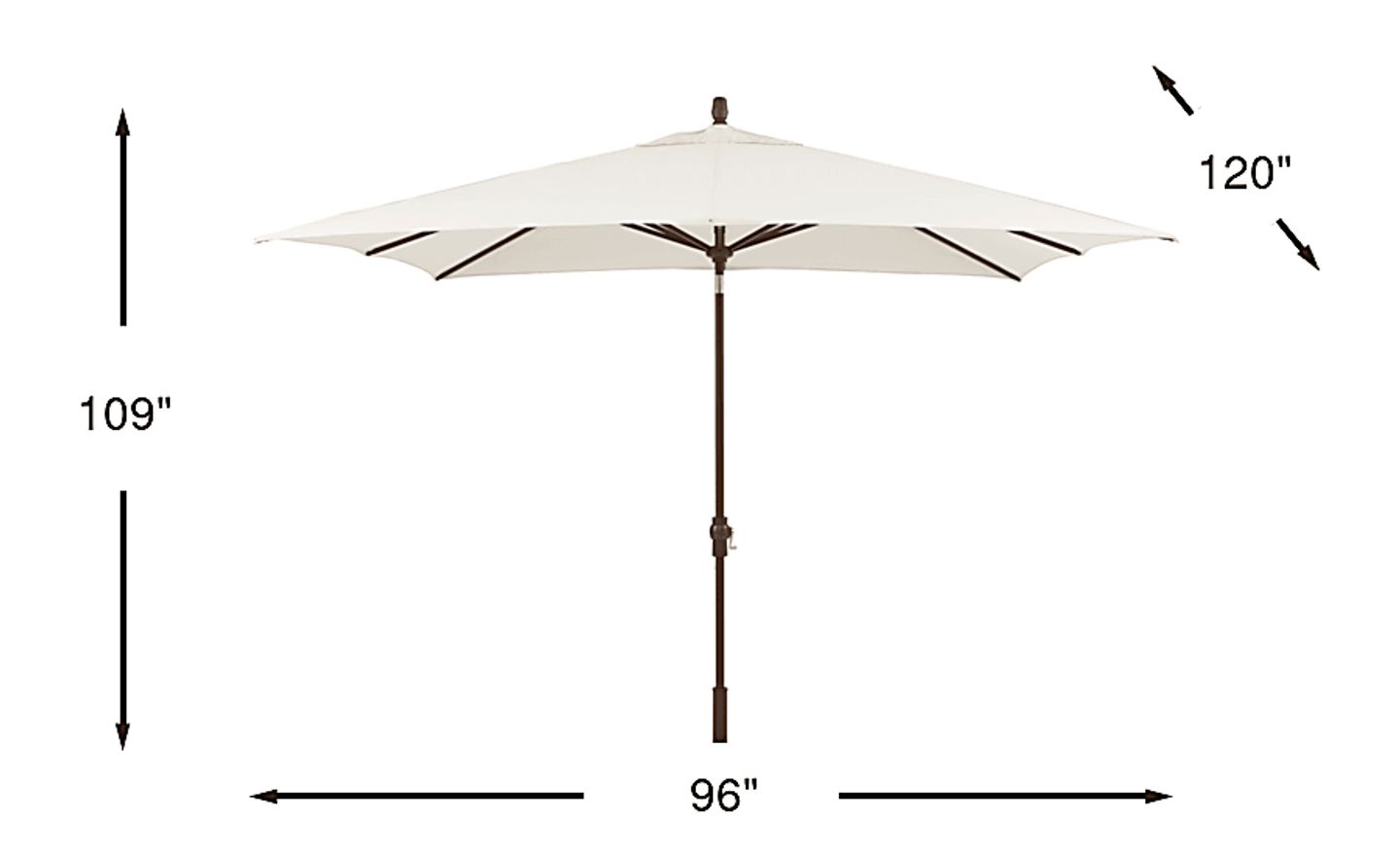 Providing the perfect shade coverage for up to a 90" oval or rectangle tables, the Seaport market style umbrella is a wonderful choice. This 8 x 10 rectangular shaped, auto tilt umbrella offers high 98% UV protection with Sunbrella fabric in an off-white natural color. Long lasting and durable too, Sunbrella fabric is known for its ability to resist fading, mold and mildew. With a rotation of the crank handle, the dynamic tilt mechanism ensures the 100% Kevlar lift cord will power the umbrella into a full tilt position. The sturdy aluminum pole is rendered in a powder coated bronze finish. 100% Sunbrella fabric. To clean Sunbrella fabric remove dirt and spray on cleaning solution (water and mild soap), then use a soft bristle brush or sponge. Allow cleaning solution to soak into fabric and rinse thoroughly until soap residue is removed. Air dry. Do not dry clean.