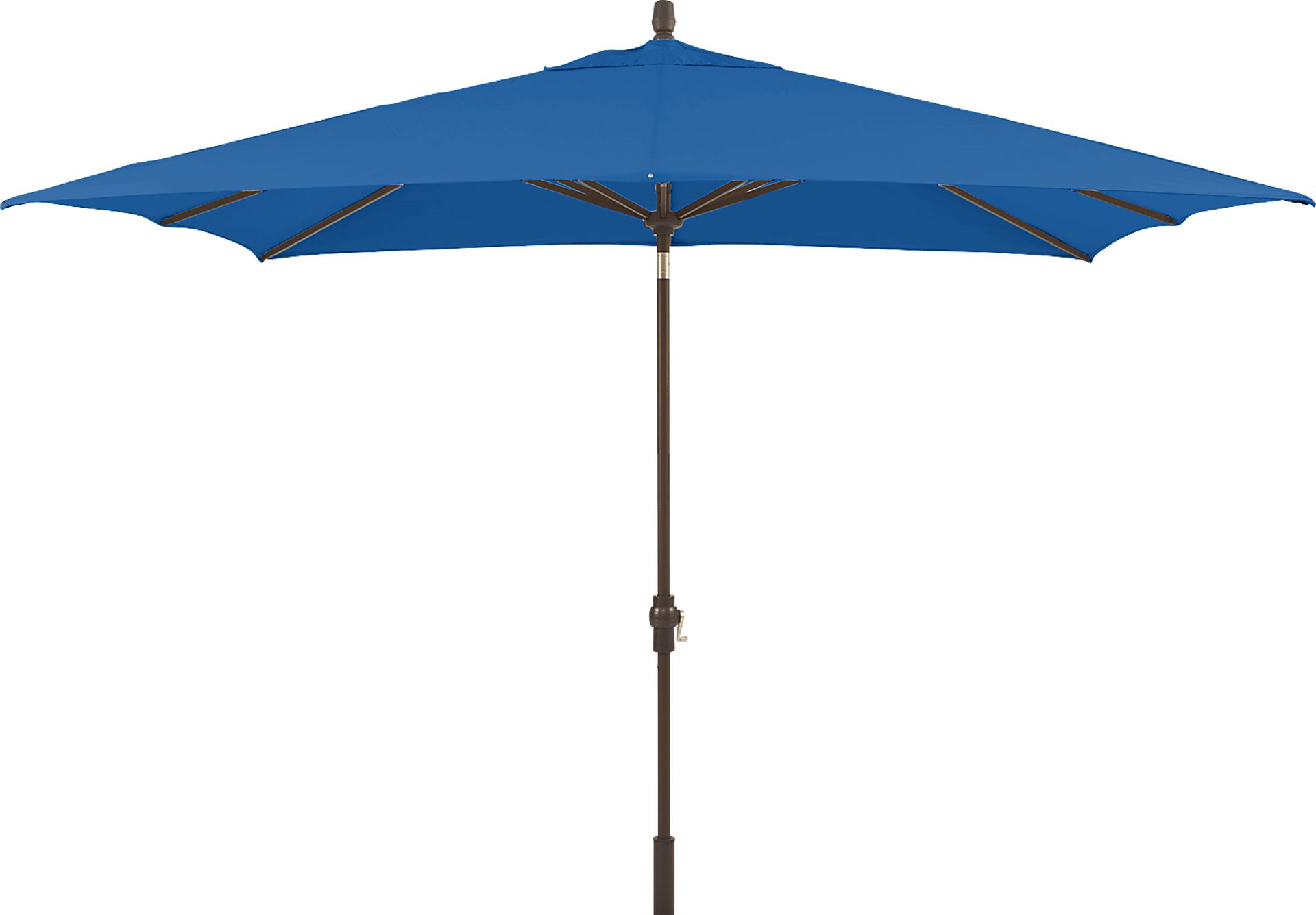 Providing the perfect shade coverage for up to a 90" oval or rectangle tables, the Seaport market style umbrella is a wonderful choice. This 8 x 10 rectangular shaped, auto tilt umbrella offers high 98% UV protection with Sunbrella fabric in a pretty Pacific blue color. Long lasting and durable too, Sunbrella fabric is known for its ability to resist fading, mold and mildew. With a rotation of the crank handle, the dynamic tilt mechanism ensures the 100% Kevlar lift cord will power the umbrella into a full tilt position. The sturdy aluminum pole is rendered in a powder coated bronze finish. 100% Sunbrella fabric. To clean Sunbrella fabric remove dirt and spray on cleaning solution (water and mild soap), then use a soft bristle brush or sponge. Allow cleaning solution to soak into fabric and rinse thoroughly until soap residue is removed. Air dry. Do not dry clean.