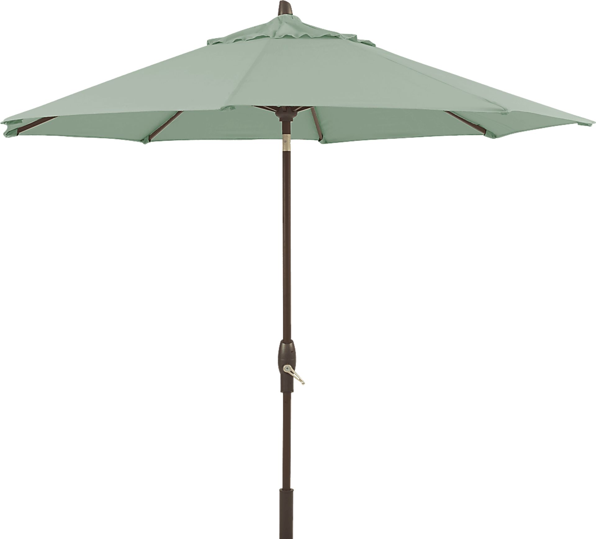 Providing the perfect shade coverage for up to 54 inch tables, the Seaport market style umbrella is a wonderful choice. This 9' octagon shaped, auto tilt umbrella offers high 98% UV protection with Sunbrella fabric in a spa green color. Durable too, Sunbrella fabric is known for its ability to resist fading, mold and mildew. With a rotation of the crank handle, the dynamic tilt mechanism ensures the 100% Kevlar lift cord will power the umbrella into a full tilt position. The sturdy aluminum pole is rendered in a powder coated bronze finish. 100% Sunbrella fabric. To clean Sunbrella fabric remove dirt and spray on cleaning solution (water and mild soap), then use a soft bristle brush or sponge. Allow cleaning solution to soak into fabric and rinse thoroughly until soap residue is removed. Air dry. Do not dry clean.