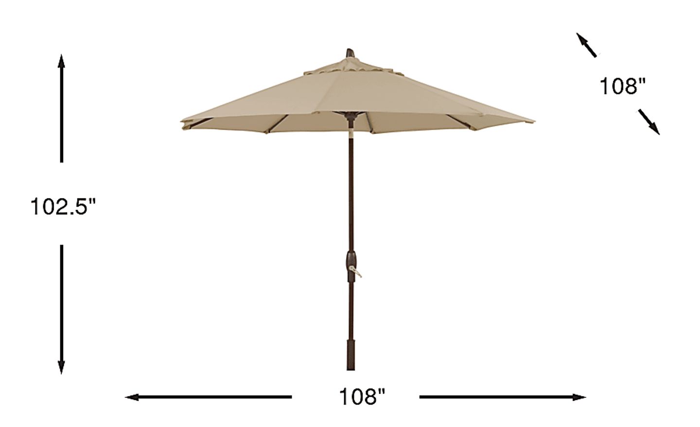 Providing the perfect shade coverage for up to 54 inch tables, the Seaport market style umbrella is a wonderful choice. This 9' octagon shaped, auto tilt umbrella offers high 98% UV protection with Sunbrella fabric in a flax color. Durable too, Sunbrella fabric is known for its ability to resist fading, mold and mildew. With a rotation of the crank handle, the dynamic tilt mechanism ensures the 100% Kevlar lift cord will power the umbrella into a full tilt position. The sturdy aluminum pole is rendered in a powder coated bronze finish. 100% Sunbrella fabric. To clean Sunbrella fabric remove dirt and spray on cleaning solution (water and mild soap), then use a soft bristle brush or sponge. Allow cleaning solution to soak into fabric and rinse thoroughly until soap residue is removed. Air dry. Do not dry clean.