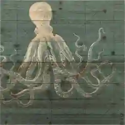 The Seaside Charm II artwork features an octopus looking directly at you in faded shades of blue and ivory which adds a vintage touch to any interior space. Its sticky tentacles are constantly searching the nooks and crannies of its coral reef home for whatever food particles it can snag. This piece is UV printed on real wood fir planks and also has sea chart motif for its background. This octopus themed piece would make a great addition to your collection of ocean themed art.