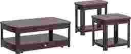 Crafted with birch veneers in a merlot finish, the Sedalia table set boasts an understated elegance, found in details such as sophisticated fluting and curved table edges. The cocktail table features lift-top storage, a spacious drawer and caster wheels. The end table and chairside table make the perfect companions to most any style of furniture. Partial assembly required.