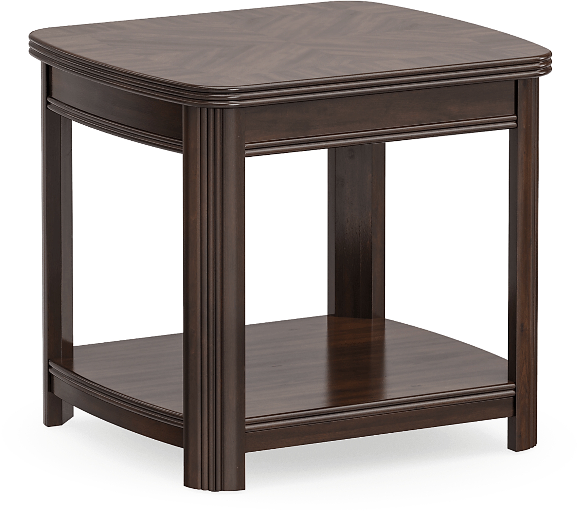 A wonderful companion to a number of different furniture styles, the Sedalia end table makes a great addition to your living space. Crafted of poplar solids and birch veneers in a merlot finish, fluted detailing on the legs accent this table's classic style nicely. A lower shelf doubles the surface space, providing a convenient spot for displaying books, magazines and more. Partial assembly required.