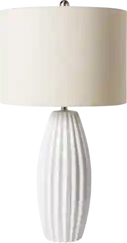 The Selkova View lamp is a traditional style lamp made of durable white ceramic in a fluted design. The beige linen lamp shade provides a neutral backdrop for any room. With a total height of 26 inches tall, this lamp will make a statement in your living space without overpowering the decor. Add timeless style to your home with the Selkova View lamp Partial assembly may be required.