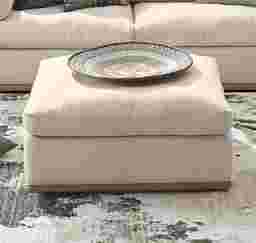 Complete your home with the Seneca Point cocktail ottoman. Topped in linen-colored microfiber, this piece is accentuated with eye-catching wood trim. Perfect for foot resting, storing decor and more, this piece is versatile in style and use. The comfortable cushion can double as additional seating during gatherings with friends and family. Upholstery: 100% Polyester.