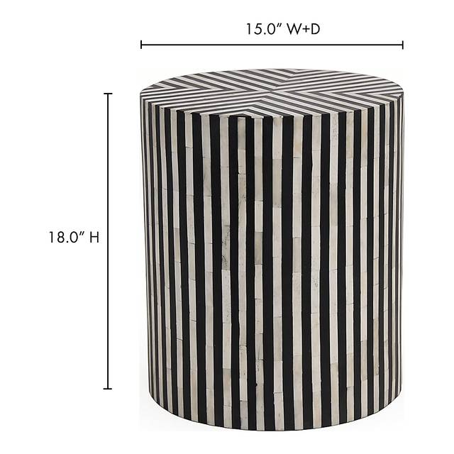 Shine on with the Serrento side table. This black-and-white camel bone and resin affair will leave you starstruck every time. This intricately designed accent table triples as a stool or plant stand. Customer assembly is required.