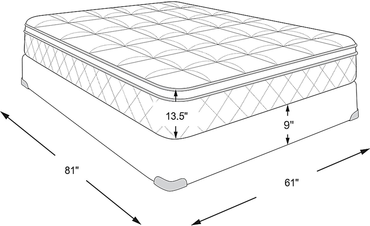 mattress: 81"l x 61"w x 13.5"h, foundation: 9"h