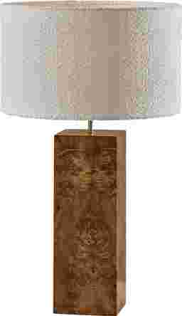 Introduce timeless elegance to your home with the Seward Shade Tall Brown Lamp. Featuring a wood base with a beautiful, burled wood veneer, this lamp adds a touch of natural sophistication to any space. The white boucle fabric drum shade offers a unique texture and softly diffuses light, creating a warm and inviting atmosphere. Standing at 28.5 inches tall, this lamp is perfectly sized for desks, bedside tables, or living room accent tables. The on/off rotary socket switch ensures easy and convenient operation. This lamp is a stylish and functional addition to any room, enhancing your decor with its refined design. Partial assembly may be required.