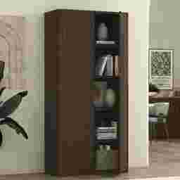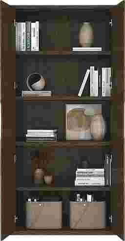 The Shadebooks II brown storage cabinet brings grounded elegance and tactile richness to modern interiors. With a focus on sculptural form and refined simplicity, each piece features clean lines, tailored silhouettes, and signature cutout pulls that double as subtle design statements. This cabinet is thoughtfully crafted with adjustable shelving and ample storage, offering functionality without compromising on style. Finished in warm, wood-grain tones, Shadebooks is designed to blend seamlessly into any space. Timeless yet distinctive, this piece offers a harmonious balance of quiet beauty and everyday utility. Customer assembly is required.
