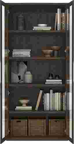The Shadebooks III brown accent cabinet brings grounded elegance and tactile richness to modern interiors. With a focus on sculptural form and refined simplicity, each piece features clean lines, tailored silhouettes, and signature cutout pulls that double as subtle design statements. This cabinet is thoughtfully crafted with adjustable shelving and ample storage, offering functionality without compromising on style. Finished in warm, wood-grain tones, Shadebooks is designed to blend seamlessly into any space. Timeless yet distinctive, this piece offers a harmonious balance of quiet beauty and everyday utility. Customer assembly is required.
